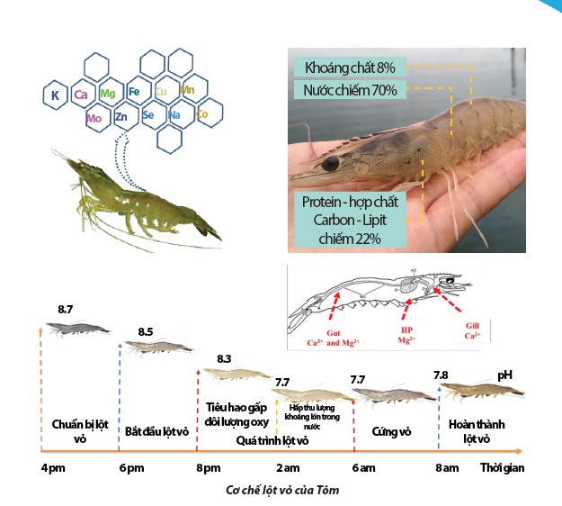 Cung cấp khoáng chất thiết yếu cho tôm, giúp tôm lột xác đồng loạt, nhanh chóng cứng vỏ sau khi lột.